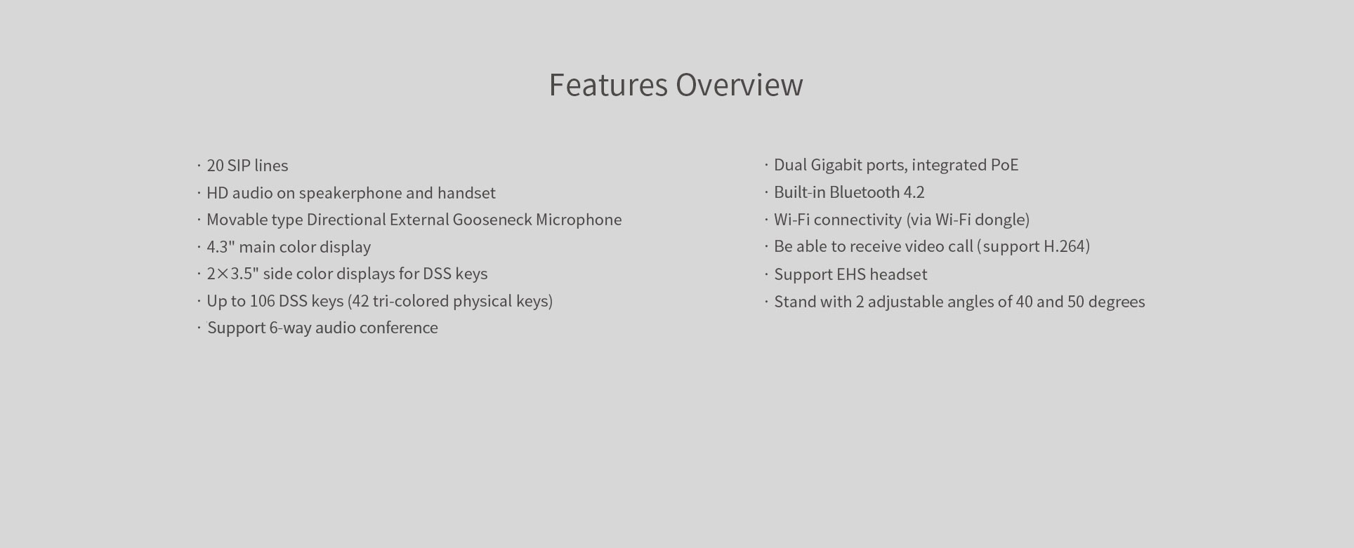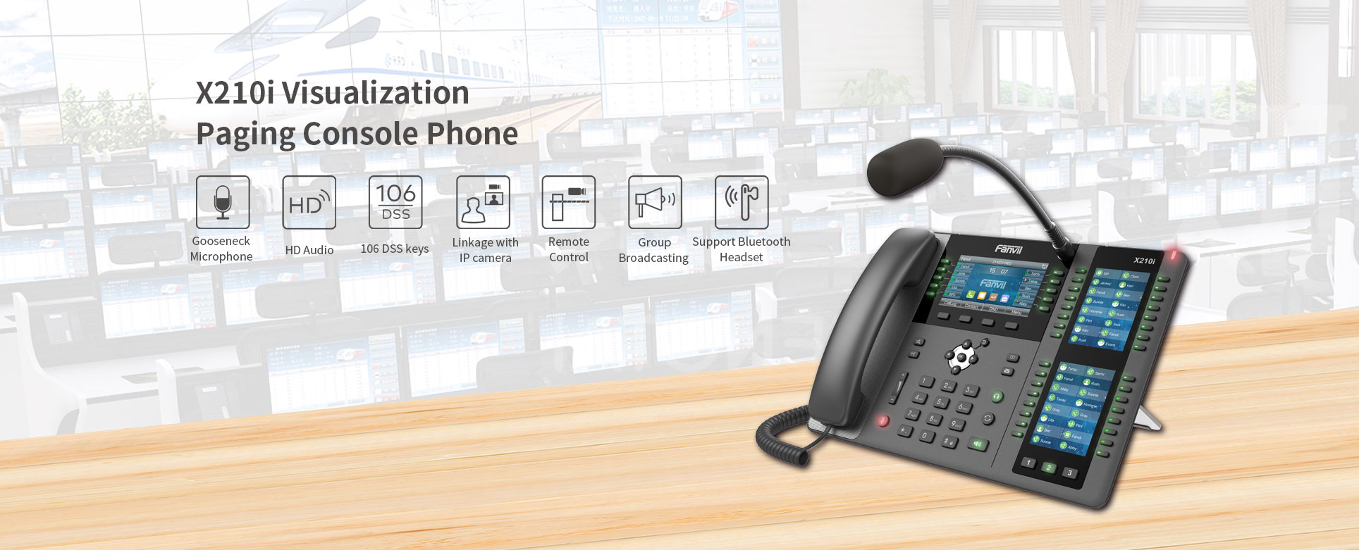 X210i is a visualization paging console phone for industry customer. It is equipped with a gooseneck microphone and supports HD hands-free calling. With intelligent programmable DSS buttons, you can set up a one-click call function to improve communication efficiency. It is compatible with the standard SIP protocol and can be used as a monitoring center or host for office manager with functions such as make calls for external & internal phones, two-way intercom, monitoring, and broadcasting. The X210i improves the management efficiency and emergency response capabilities.
