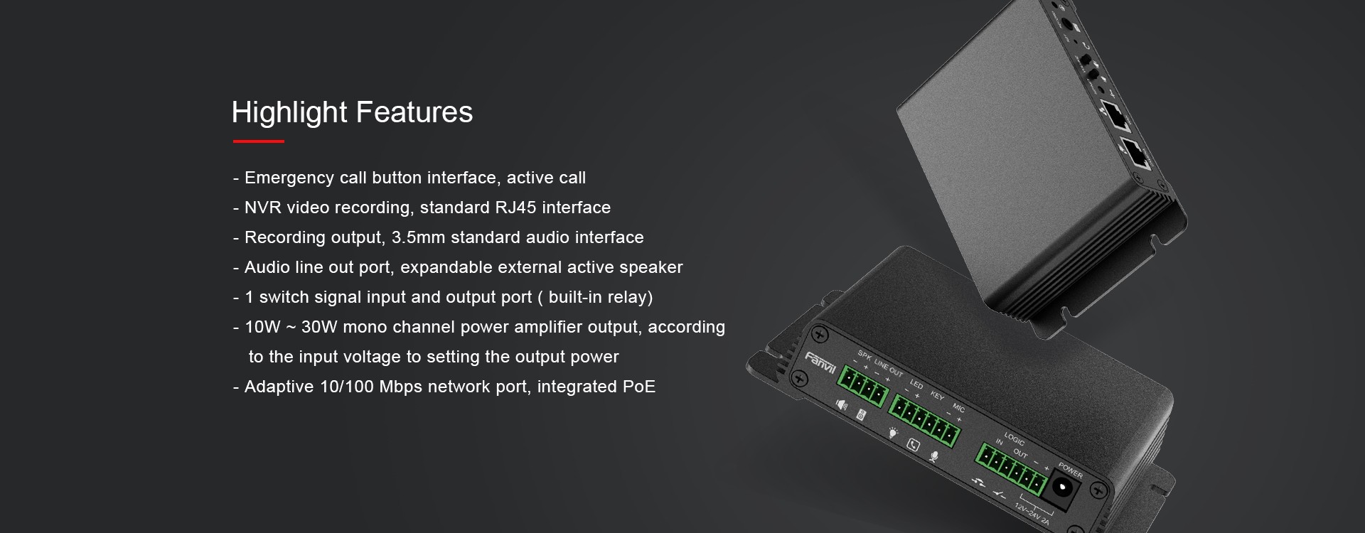 Fanvil PA2S is a SIP paging gateway that uses the standard IP/RTP/RTSP protocol for media streaming. It sets a variety of functional interfaces in one: broadcast, recording, intercom, security. Through the connection of the external devices to achieve audio and video intercom, broadcast, security trigger and other practical functions, Fanvil PA2S can apply to multiple scenarios to deploy the equipment. The size of the device is small, which is suitable for DIY applications of various integrated solutions.