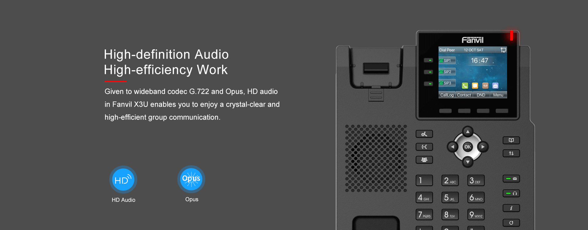 As an ideal cost-effective Gigabit IP phone, Fanvil X3U provides the direct access to instructions with the intuitive design of high-resolution color display and newly increased line keys, offering you greater flexibility, productivity, to exceed the different demands of businesses. Wideband codec of G.722 and Opus in this device deliver you an immersive HD audio experience in both high band and low band with the network.