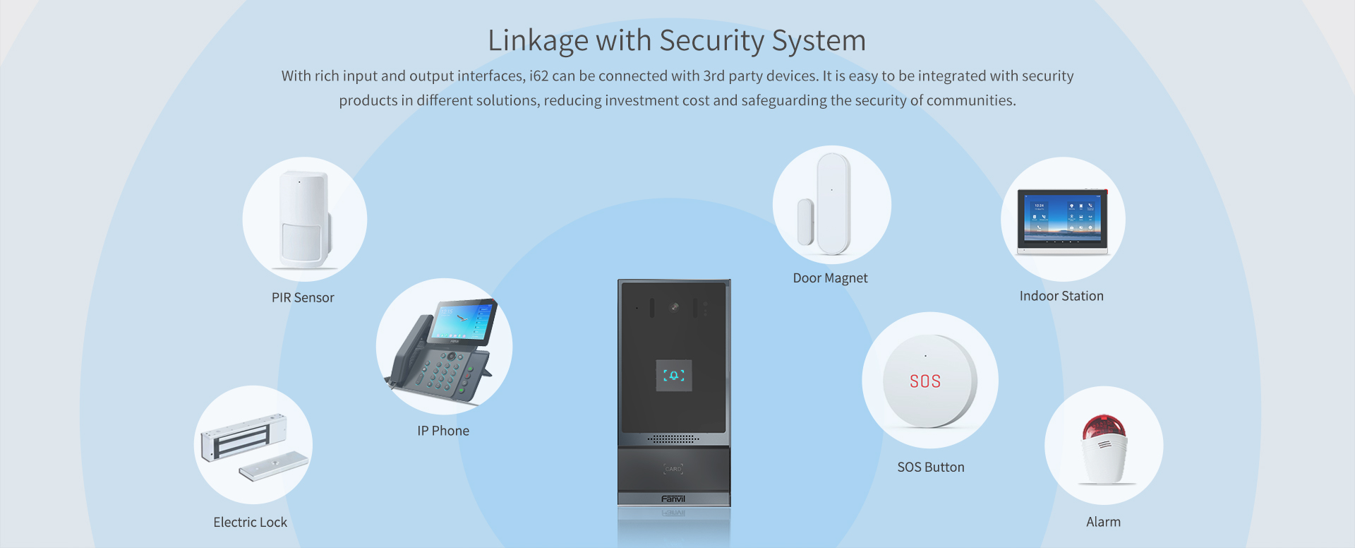 Based on SIP and ONVIF protocols, i62 is a video door phone that integrates powerful functionalities of access control, intercom, and security protection. Featuring an aluminum alloy design and single speed-dial button, i62 delivers a high-quality elegant appearance. With high protection level IP66 and IK07, it is waterproof, dustproof and anti-collision in most outdoor environments. i62 allows users to make audio/video calls via a speed-dial button and a 2 Mega-pixel camera and achieve access control by different modes. With rich input and output interfaces, i62 is easy to link with other security devices and customize into various solutions in apartments, commercial buildings, communities and industrial parks.