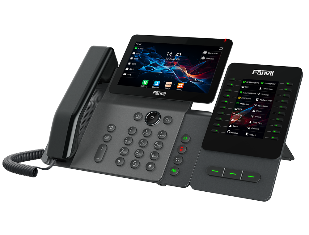 Fanvil EM60 is a multifunctional color-screen expansion module that can be used as an accessory with the V65/V66/V66 Pro phones, helping busy users handle high-volume calls with ease. It features a 4.3-inch color display and supports 60 programmable keys, each equipped with a dual-color LED indicator. When connected to a compatible phone, it enables features such as speed dial, call transfer, call hold, and BLF status display, assisting in efficiently managing large call volumes and improving office productivity.
