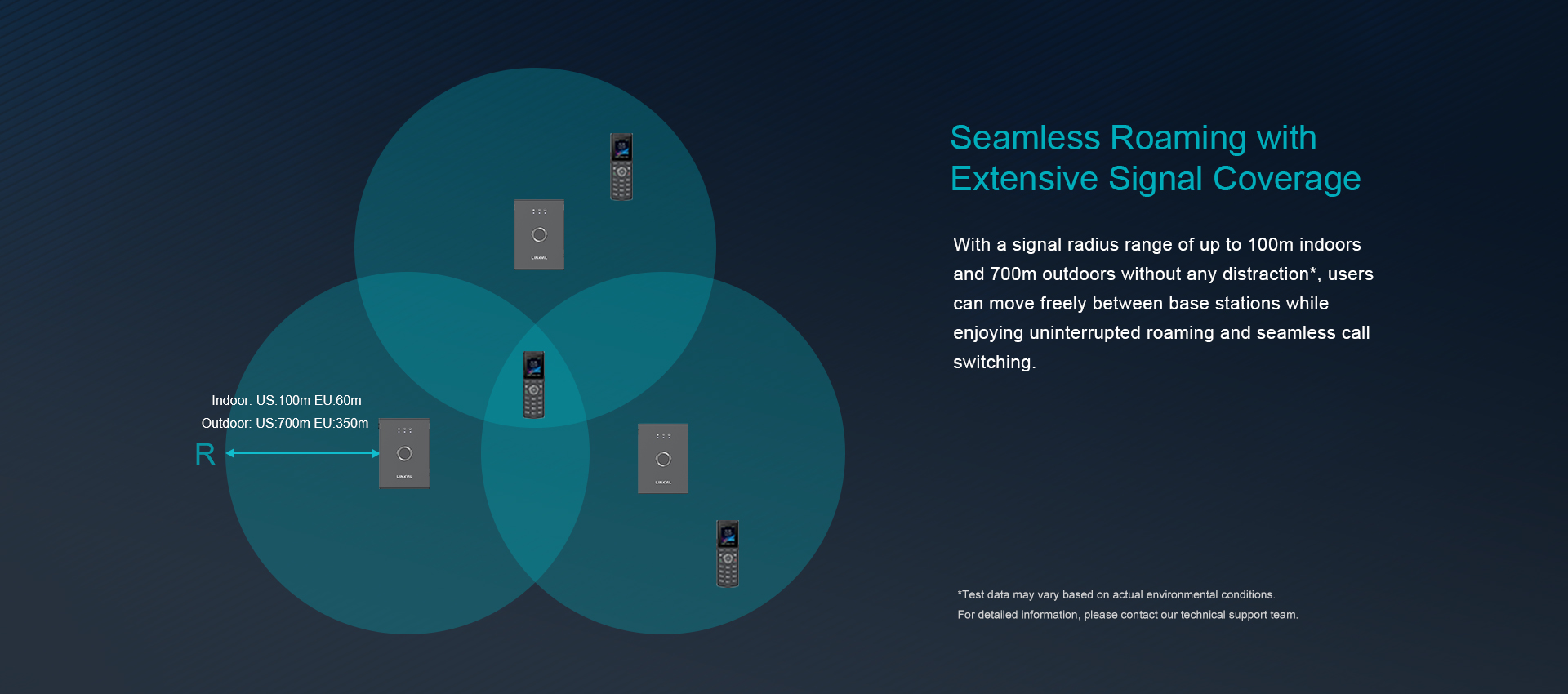 LINKVIL Cordless Multi-cell System features 1 W710H manager, up to 20 base stations, and 300 W610H handsets. Its exceptional scalability, high call capacity, and extensive coverage make it perfect for diverse applications.