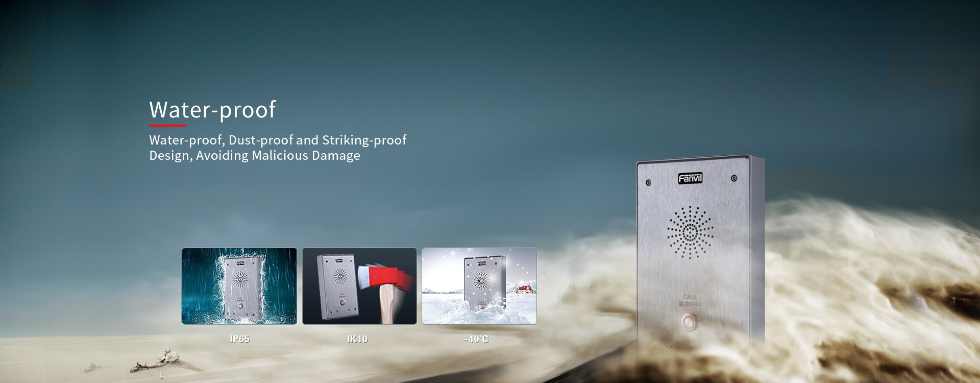 The front plat of this model is aluminum alloy material with cast aluminum back plate, it makes sure that this model support waterproof, dustproof function and IP65 protection level; We also use build-in tamper-proof detector to prevent external destroy.
