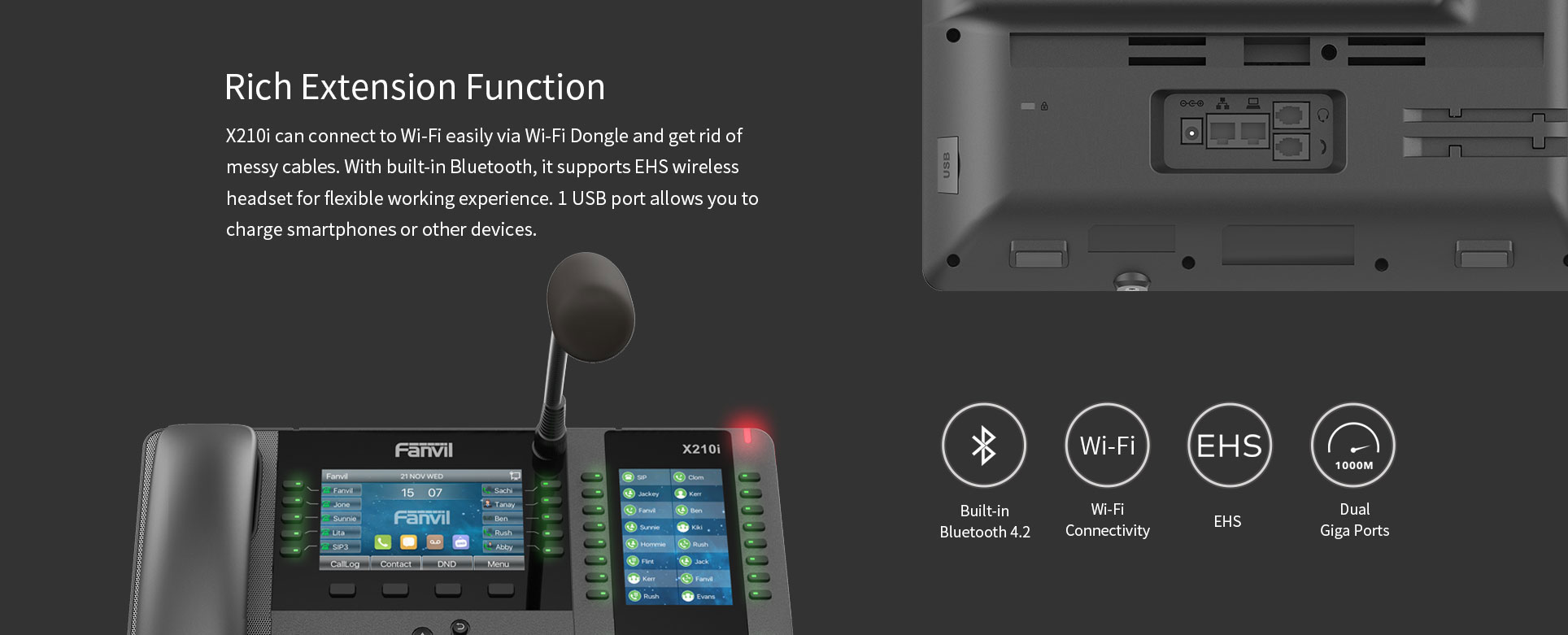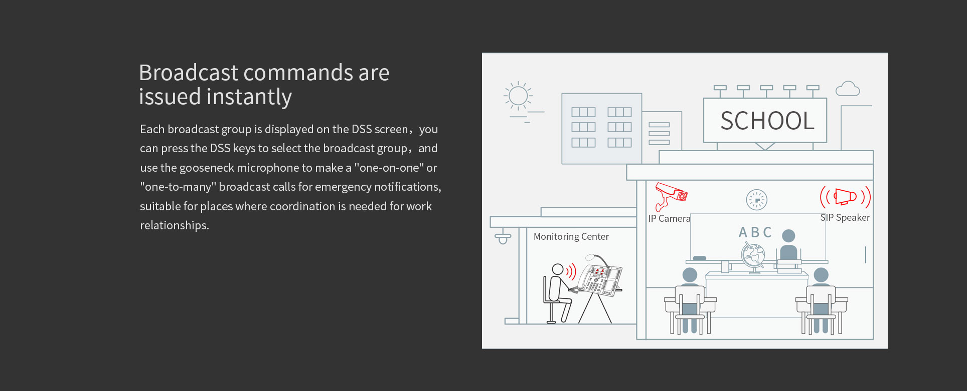 X210i is a visualization paging console phone for industry customer. It is equipped with a gooseneck microphone and supports HD hands-free calling. With intelligent programmable DSS buttons, you can set up a one-click call function to improve communication efficiency. It is compatible with the standard SIP protocol and can be used as a monitoring center or host for office manager with functions such as make calls for external & internal phones, two-way intercom, monitoring, and broadcasting. The X210i improves the management efficiency and emergency response capabilities.