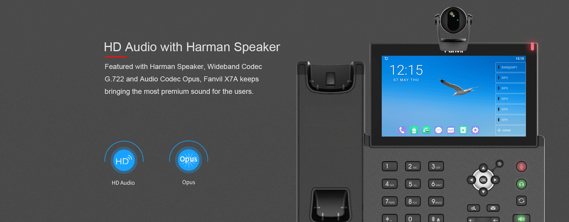 As a high-end enterprise IP phone with Android 9.0 OS, Fanvil X7A provides a more intelligent and smoother touch operation experience for the users. 112 DSS keys on the 7-inch color touch screen, built-in Wi-Fi, built-in Bluetooth make daily communication smarter and simpler. Matching an optional USB camera Fanvil CM60, Fanvil X7A can deliver a superb audio and video for the group conference.