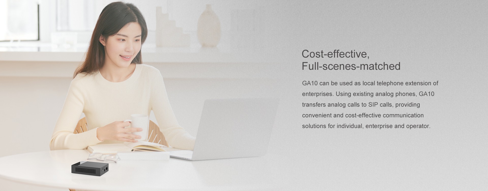 GA10 is a SIP ATA gateway with an easy-to-use FXS port. It supports G.722 and Opus audio codec, 2 SIP lines, 3-way conference advanced VoIP functionalities. By migrating to IP voice with easy-to-install ATA, GA10 enables users to take advantage of VoIP on analog phones. It provides convenient, stable and cost-effective communication solutions for individual, enterprise and operator to realize the deployment of VoIP.