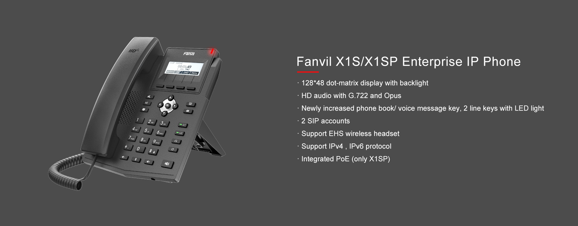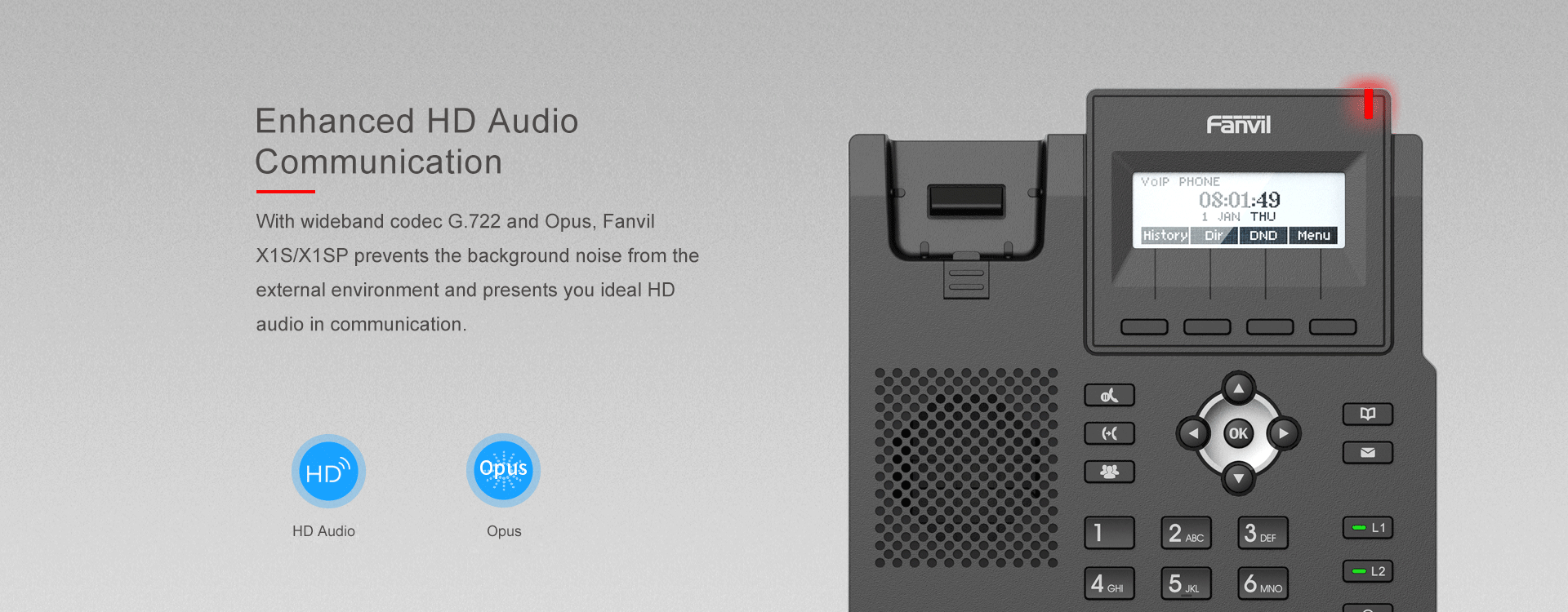 Fanvil X1S/X1SP features a brand new elegant appearance with a clear backlight display and newly added line keys with LED light, providing easier operation access for the users. Having supported EHS wireless headset and improved HD audio with wideband codec G.722 and Opus make this phone an efficient business tool in office.