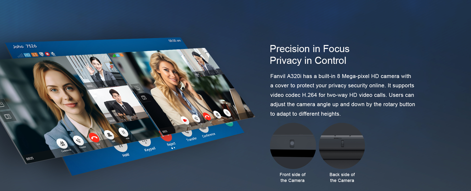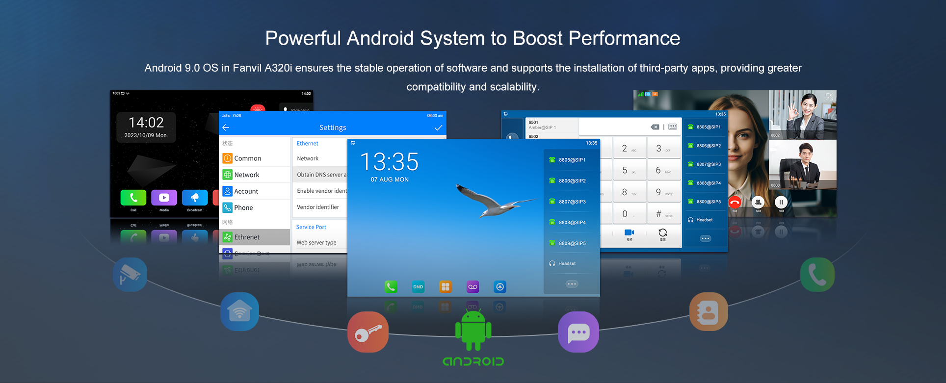 A320i is tailored for industry use, featuring a gooseneck microphone and HD hands-free calling. With 116 DSS keys, a 10.1-inch touch screen, Wi-Fi, and Bluetooth, it streamlines daily communication. Equipped with an adjustable camera and an HD PTM handset, it enhances audio and video experiences for group conferences. Compatible with SIP, it's perfect for management or command centers, offering functions like video calls, intercom, monitoring, and broadcasting.