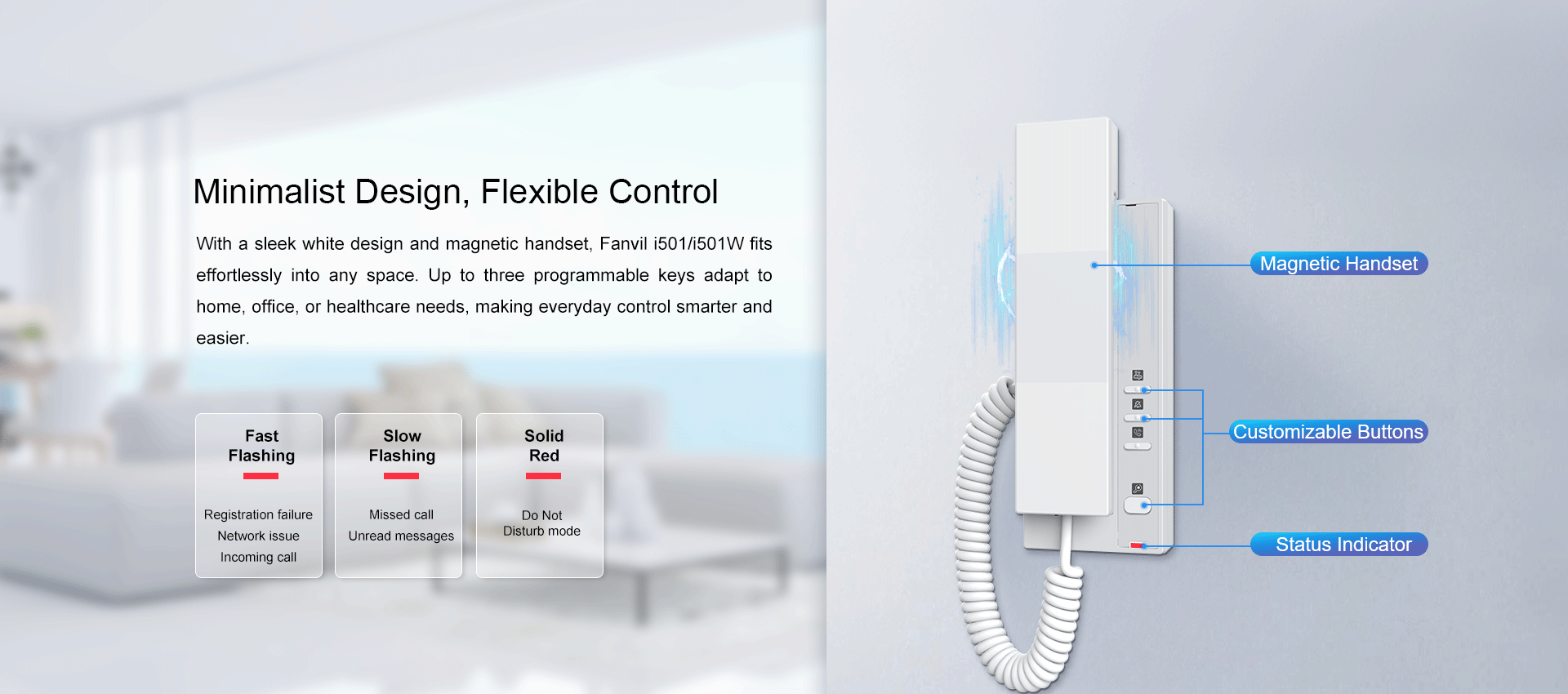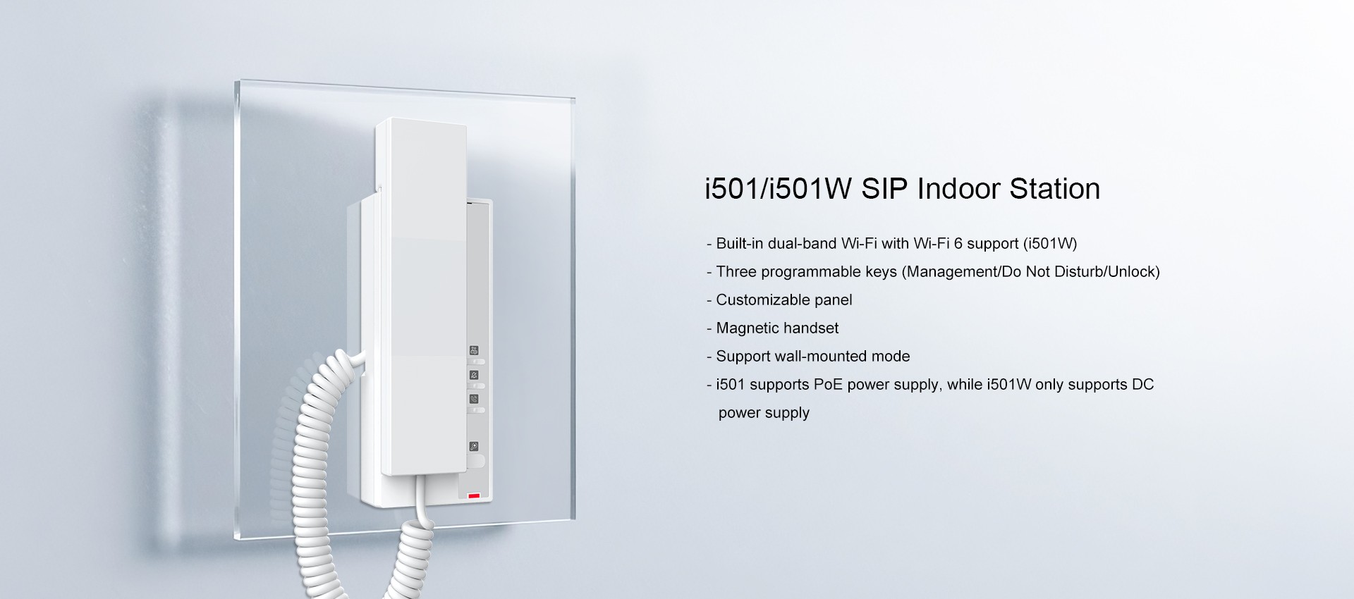 The Fanvil i501/i501W SIP Indoor Station features a magnetic handset and one-touch remote unlocking for easy visitor access. With support for 2 SIP lines and a short-circuit input, it’s ideal for homes, offices, and hotels, as well as enables clear audio communication and reliable access control for a secure, smart, and convenient environment.
