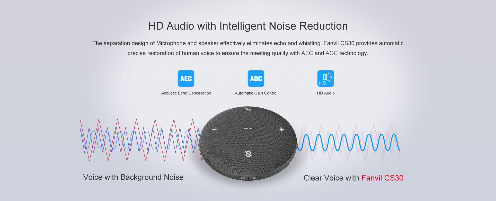 Fanvil hereby informs you that the Fanvil CS30 Speakerphone has been discontinued since December 22, 2025. After the date, new orders for the product would not be accepted. After the End-of-Life date, Fanvil will not pursue any new feature development on CS30 Speakerphone, but we will provide software support of the discontinued (EOL) products following the industry standard practices. Consistent with such standards, Fanvil will continue to offer support and after-sales service.